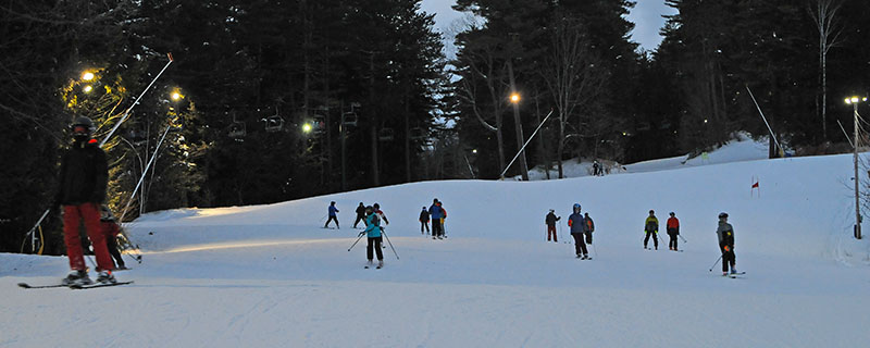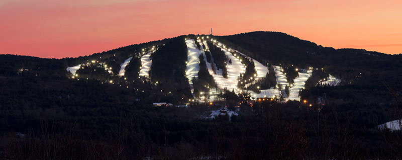 King Pine offers twilight skiing and riding every day from 3:30 to 6 PM, giving guests plenty of time to enjoy the slopes as the day fades into night. For those seeking even more evening fun, the resort extends its hours on Tuesday nights, staying open until 8 PM. For another snow-fueled adventure, plan some time at their tubing hill. Whether you're looking for a peaceful sunset ride or an extended session on the trails, King Pine provides the perfect setting for a memorable winter adventure after dark.