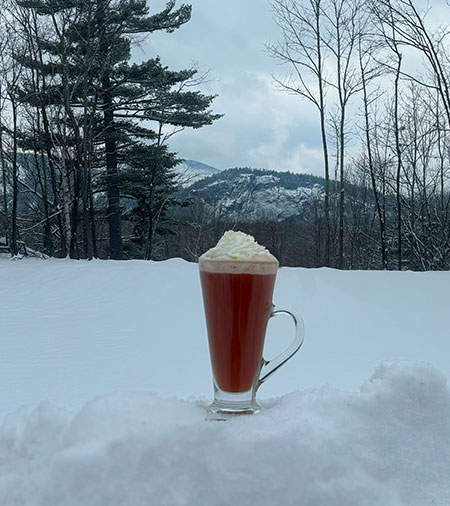After a day on the slopes or a scenic hike through snow-covered trails, there's nothing better than warming up with a comforting Maple Hot Chocolate. A local favorite at the Cathedral Ledge Tasting Room, this decadent treat is the perfect antidote to the chill of winter. The rich, velvety hot chocolate is paired with Organic Maple Liqueur, offering a beautifully smooth sweetness that complements the deep, natural flavors of 100% pure NH Maple Syrup.
