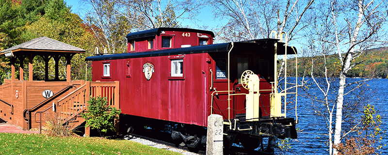 Tucked into the southern tip of Lake Sunapee, you’ll find a red caboose. It’s not just any red caboose, this is the Bell Cove Historic Museum. Although the hours are very limited during the fall season, it’s a great find and a great photo opp as it’s located in a small park with views out onto the water. Located on the site of the former Newbury Station, the museum does house a bit of history. If you catch it when it’s open, learn about the history of rail service in the region and how vacationers used to arrive in the area prior to the 1950s.