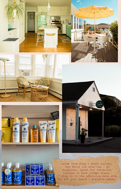 I sprawled out in one of the 750-square foot bungalow house apartments during my stay, which has 1 bedroom, a fully equipped kitchen, and living/dining space. I loved sitting out on the patio in the morning - and being just steps from the pool was definitely a perk! Forget your swimsuit or sun protection? The Rye Motor Inn also has an adjoining swim shop for all your beach + poolside needs!