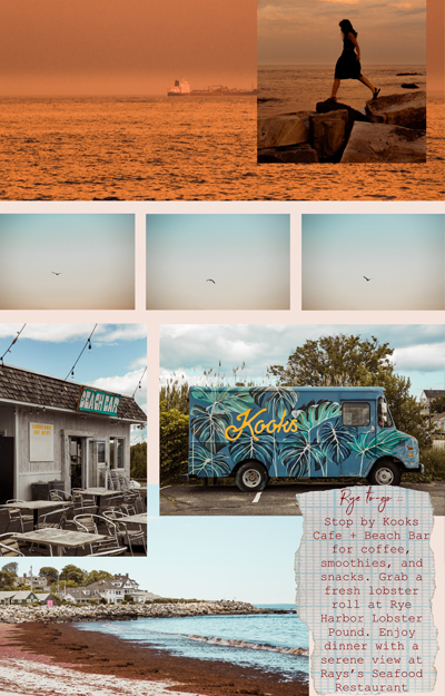 Heading further down the coast into the sleepy town of Rye, you’ll come across Kooks Cafe + Beach Bar - a great spot for breakfast, coffee, or taco. For dinner in the area, we tried out Ray’s Seafood Restaurant for some classic lobster rolls, seafood chowder, and fried calamari. Grab your order to-go, and enjoy your meal in the back seating area that looks out on the beautiful surrounding marshland.