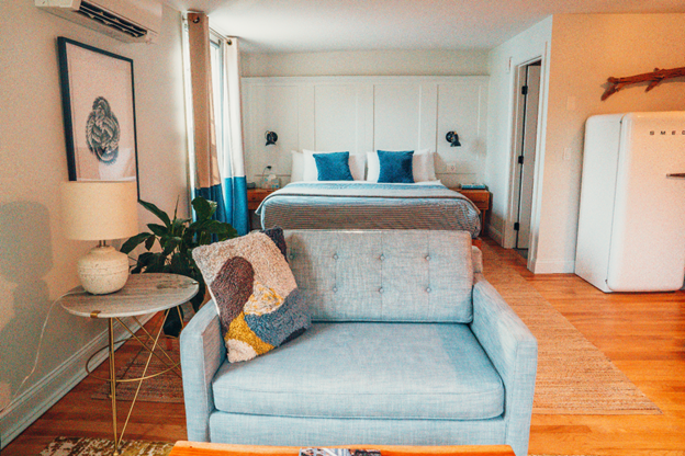 For a captivating stay that echoes the essence of coastal life, the Great Island Inn in New Castle is an idyllic choice. The boutique apart-hotel’s cozy and nautical-inspired rooms provide a tranquil haven for relaxation, and is just a short three-minute walk from the beach.