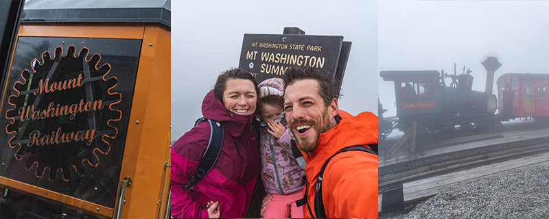 To end our time in New Hampshire, we set our sights on Mount Washington — the tallest mountain in the state and the Northeast. It’s also home to some of the wildest weather and the fastest wind speed recorded on Earth. We planned to hike the mountain, but true to its reputation, the weather wasn’t ideal. With hiking out of the question due to weather, we had two options — drive the Auto Road; or take the Mount Washington Cog Railway. We took the Cog, and I’m so happy we did. It was such a fun and unique way to reach the summit, and my daughter LOVED it. Built in 1868, it was like taking a ride back through time as it climbs 3,500 feet to just below the summit at 6,288 feet. Although the weather at the mountain base was calm and sunny, the summit was foggy and WINDY. It would have been nice to see the expansive views from the tallest peak in the Northeast, but honestly, perhaps it was more memorable to experience this mountain while enveloped by the weather it’s most known for. Our trip to New Hampshire was perfect, and I look forward to visiting again.