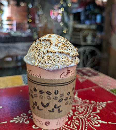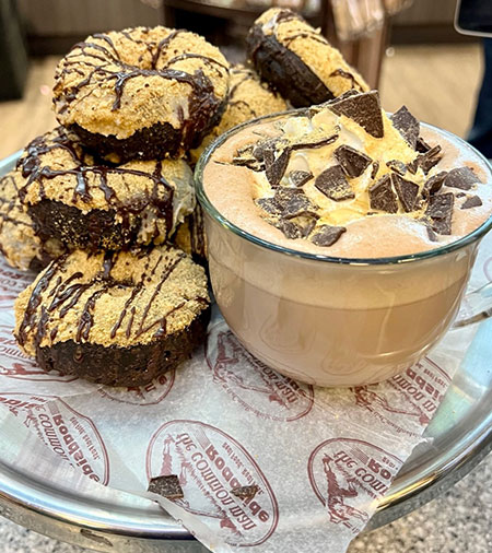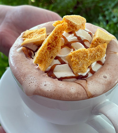 Head over to Two Bees Cafe for a hot cocoa creation that combines comfort, indulgence, and a touch of fun. Their Salted Caramel Honeycomb Hot Cocoa is a true winter treat that hits all the right notes. It starts with their house-made rich dark chocolate, which gives the cocoa a deep, velvety richness, then blends seamlessly with the salty-sweet flavor of caramel for the perfect balance. Crunchy bites of honeycomb candy are added to bring a delightful texture and an extra layer of flavor. Dip in a fresh-baked croissant for the ultimate indulgence on a frosty winter day.