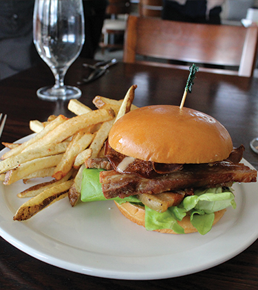 Owl’s Nest Resort, Thornton, NHThe perfect springtime sandwich to highlight maple sugaring season. This crispy and tender pork belly has the sweet heat of their maple sriracha aioli, airy crunch of fried sweet potato crisps, and lettuce, all on a toasted brioche bun.
